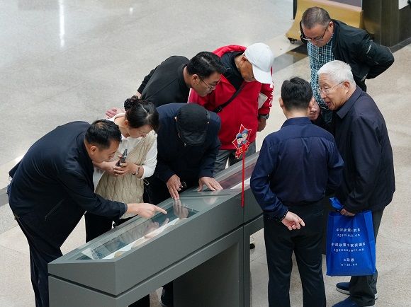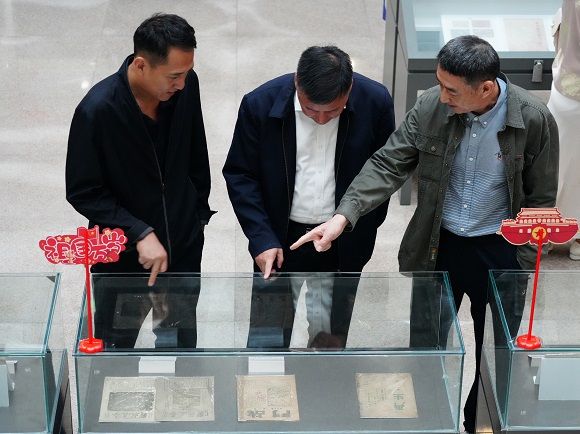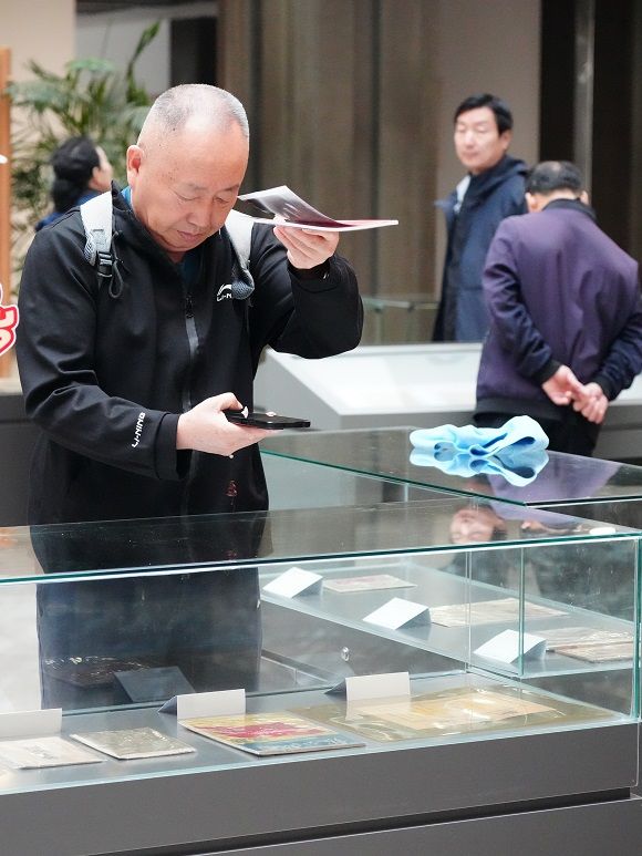 不少市民围绕展柜中陈列的百余件泛黄文献轻声交流,并不时用手机记录下一幅幅珍贵画面。