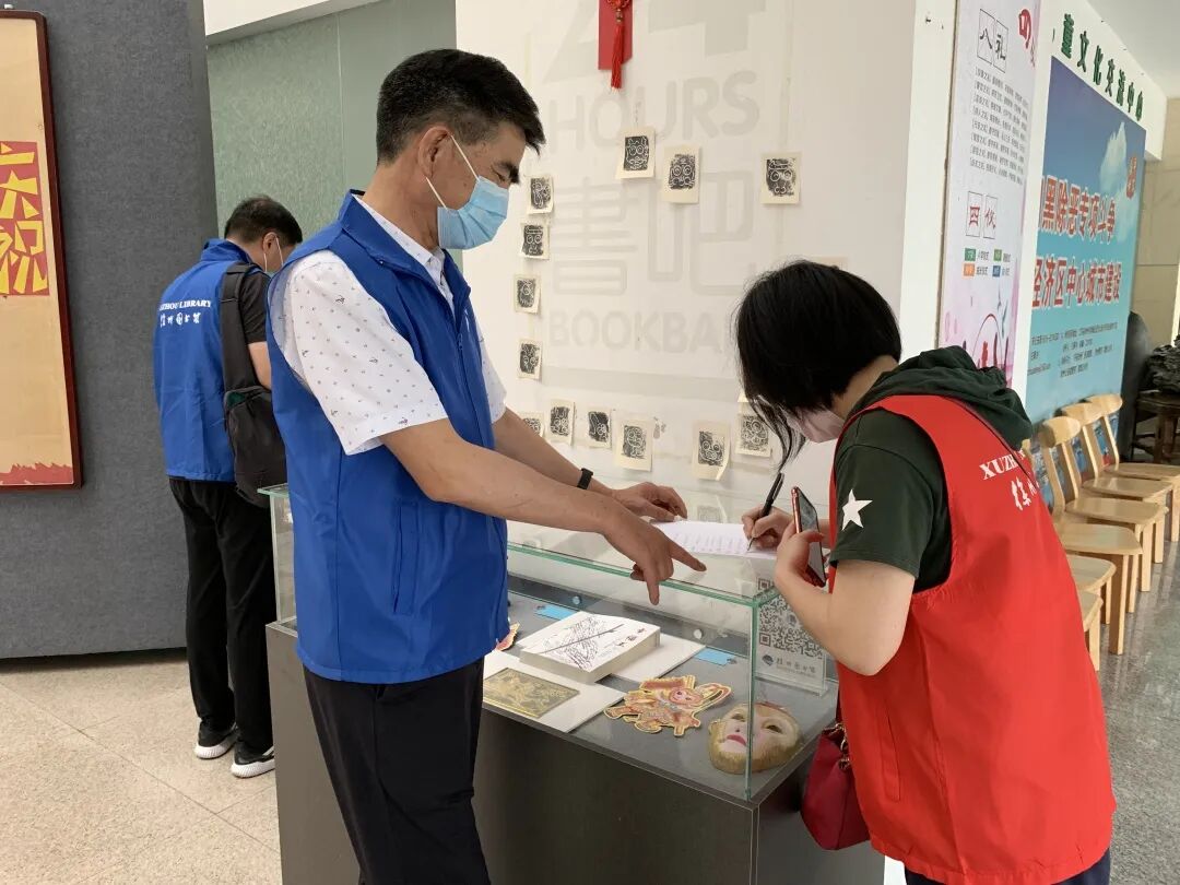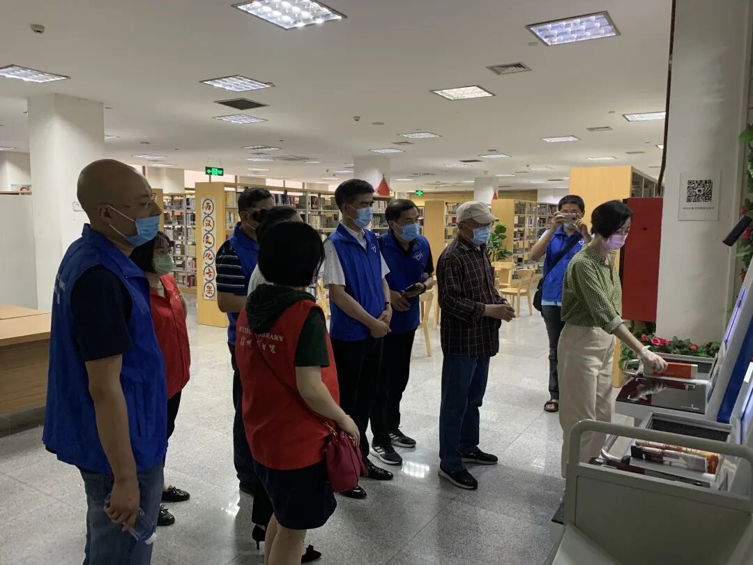 市财政局机关党员先是实地考察了市图书馆疫情防控志愿服务岗、新书外借室、综合外借部、少年儿童图书馆、期刊阅览室、读者自修阅览室等读者服务区域,深入调研了读者服务面积、年到馆读者量、年图书外借册次、新增文献入藏量、举办的各类讲座、展览、读者培训辅导活动、以及总分馆制建设情况,查看了古籍书库、善本书库和恒温恒湿系统及安全保障措施,重点调研了解了宋版《四书章句集注》、清内府铜活字版《钦定古今图书集成》等入选“国家珍贵古籍”的古籍保护情况,以及部分民国文献、徐州地方特色文献特藏等工作。然后,市图书馆党员引导机关党员开展志愿服务,对到馆读者进行体温测量、查验口罩、彭城码和实名登记工作,为读者提供参考咨询和文明导读服务,并对开放部门的书架和书籍进行了整理和维护,最后,市图书馆为机关党员办理了借书证,丰富机关党员的文化生活,大力营造全民阅读的良好氛围,让更多的人分享悦读、享受快乐、融入生活。